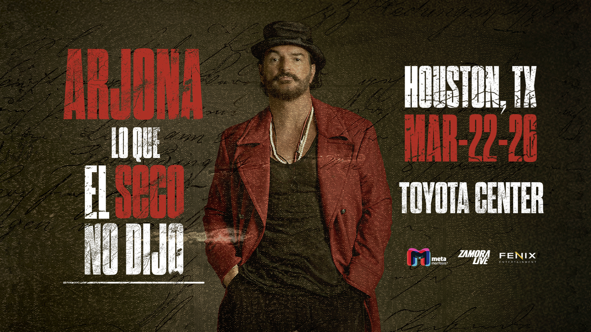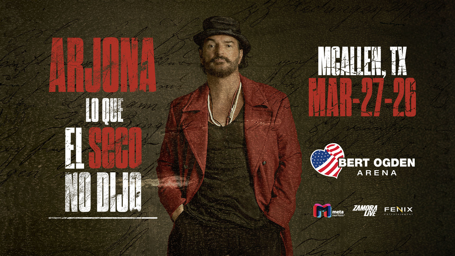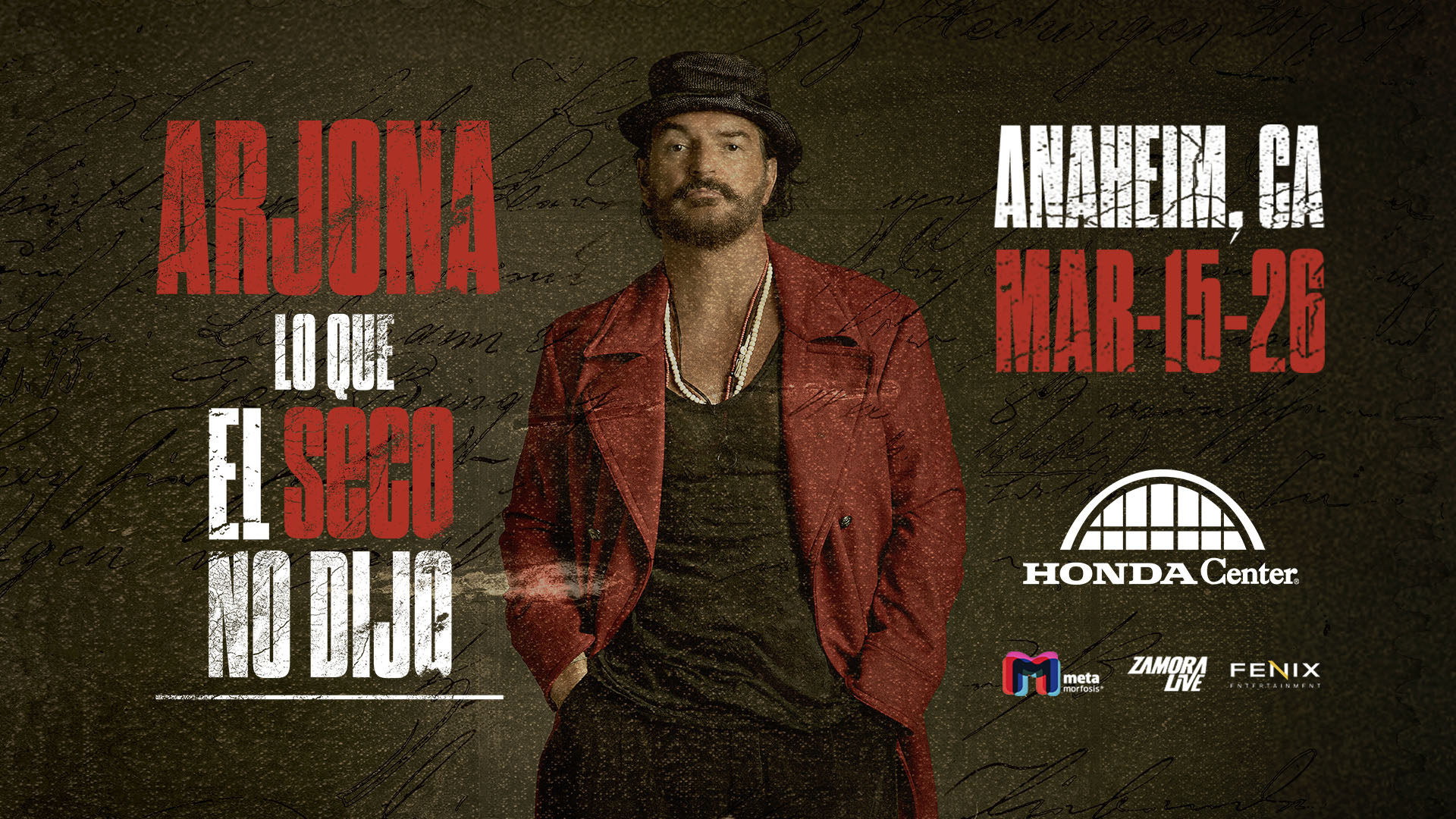 Ricardo Arjona presenta su nueva gira internacional Lo Que El SECO No Dijo Tour 2026, una propuesta musical que explora su lado más crudo, honesto y visceral. Con una puesta en escena innovadora y un repertorio totalmente renovado, esta gira marca una nueva etapa en la carrera del cantautor guatemalteco, combinando poesía urbana, reflexión social y la inconfundible esencia lírica que lo ha consagrado en todo el mundo.