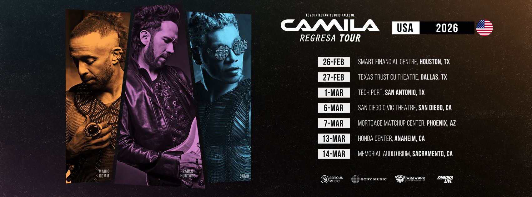El grupo mexicano Camila confirmó su Regresa Tour 2025 con paradas en la Costa Este de EE. UU., donde presentarán sus grandes éxitos y nuevas sorpresas en vivo. Los conciertos tendrán lugar en arenas emblemáticas y con boletos disponibles a través de Ticketmaster y recintos oficiales.